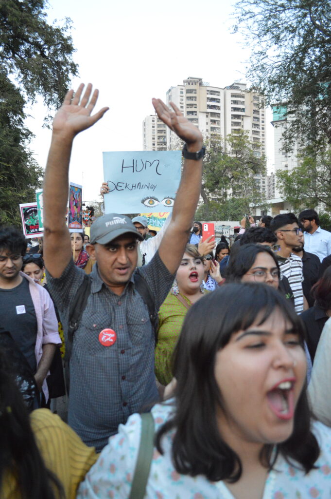 This year, the organizers of the march opted for a new approach. Instead of speeches, there were sessions held. The venue was divided into three tents. The main stage focused on discussions about minority rights. The Churail tent focused on women’s economic rights related to hunger and food security. While the Behn Chara tent focused on the impacts of transphobia and cissexism in everyday life.